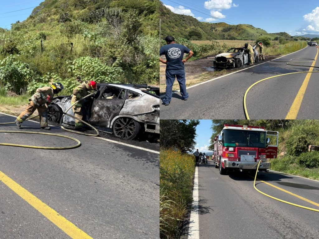 Este sábado fue recibida una llamada de auxilio por medio de la línea de emergencias 9-1-1 en la cuál se informó sobre un incendio de vehículo en la carretera Federal 15 libre Tepic – Guadalajara, sobre el kilómetro 147, como referencia a la altura de la comunidad de Zoatlán, municipio de Ahuacatlán.
