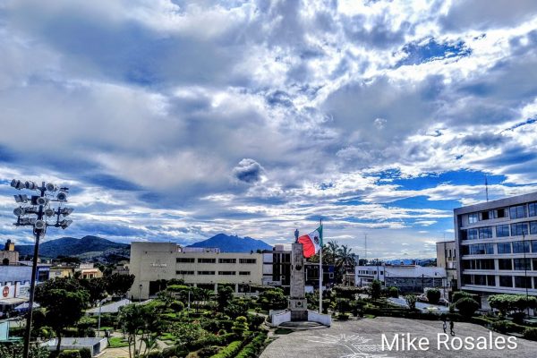 Por: Mike Rosales Asi pinta en estos momentos la plaza Juárez, cual si fuera una acuarela desde el corazón de la capital Cora.