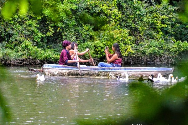 Por: Charly Flores En la Laguna de Santa María del Oro, la vista desde un restaurante. Al fondo se observa el azul turquesa de la laguna.