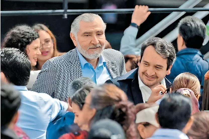 Cuando Sheinbaum se tomaba una selfi con las gobernadoras de Baja California, Marina del Pilar, y de Campeche, Layda Sansores, Monreal y Velasco alzaban su puño al grito de “Presidenta”, mientras que Adán Augusto hacía un ademán casi indescifrable moviendo los brazos de arriba a abajo comohaciendoevidenteelespacio al cual estaba constreñido.
