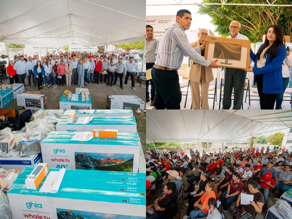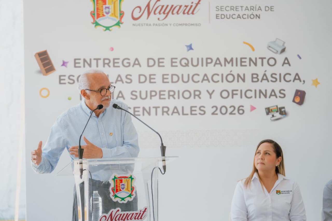Más de 12 mil estudiantes de telesecundarias y telebachilleratos comunitarios en Nayarit contarán con nuevo equipamiento tecnológico, tras la entrega que realizaron el gobernador del estado, Miguel Ángel Navarro Quintero, y su esposa, la presidenta del Sistema DIF Nayarit, doctora Beatriz Estrada Martínez.