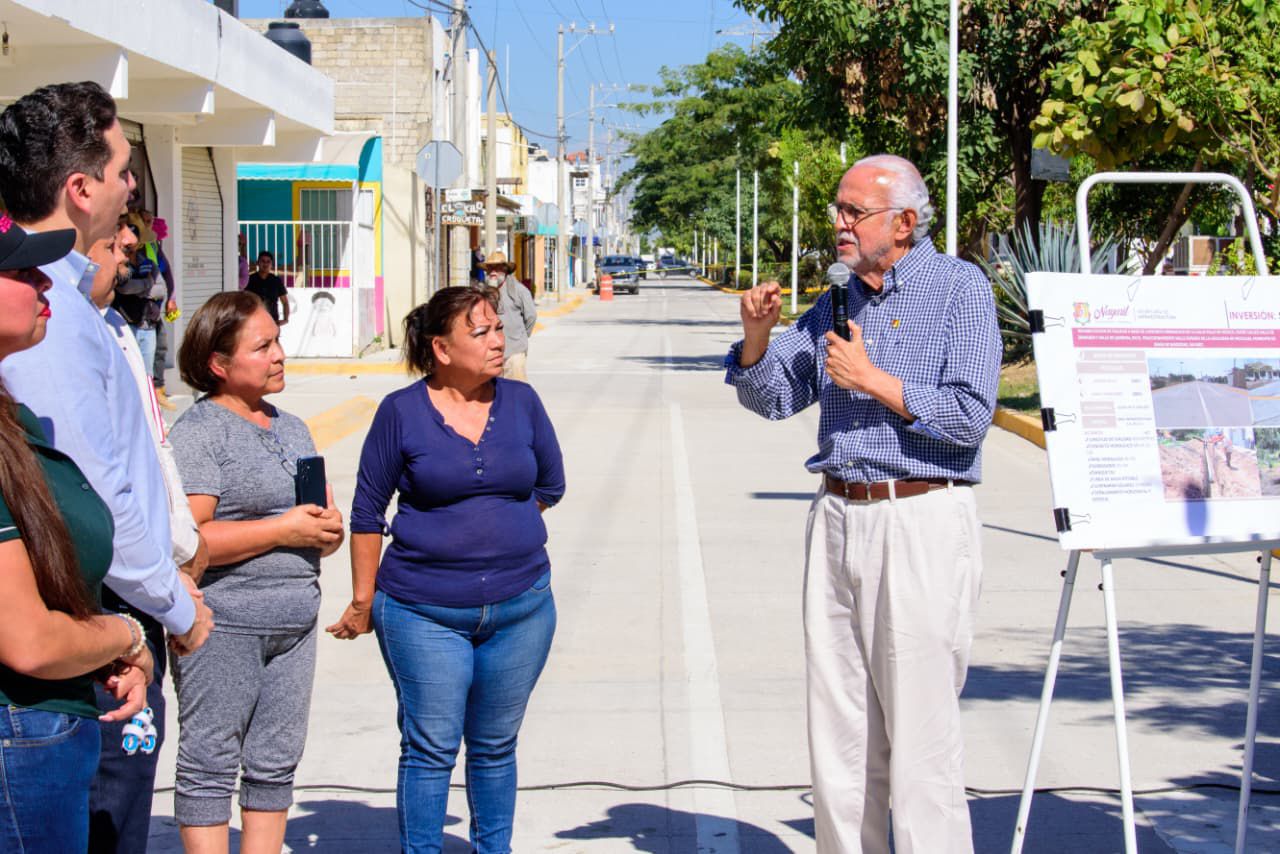 Se trata de una vialidad que se encontraba en malas condiciones y que hoy cuenta con alumbrado público, banquetas, señalización y renovación de tubería, acciones que brindan mayor seguridad y mejor movilidad a las familias de la zona.
