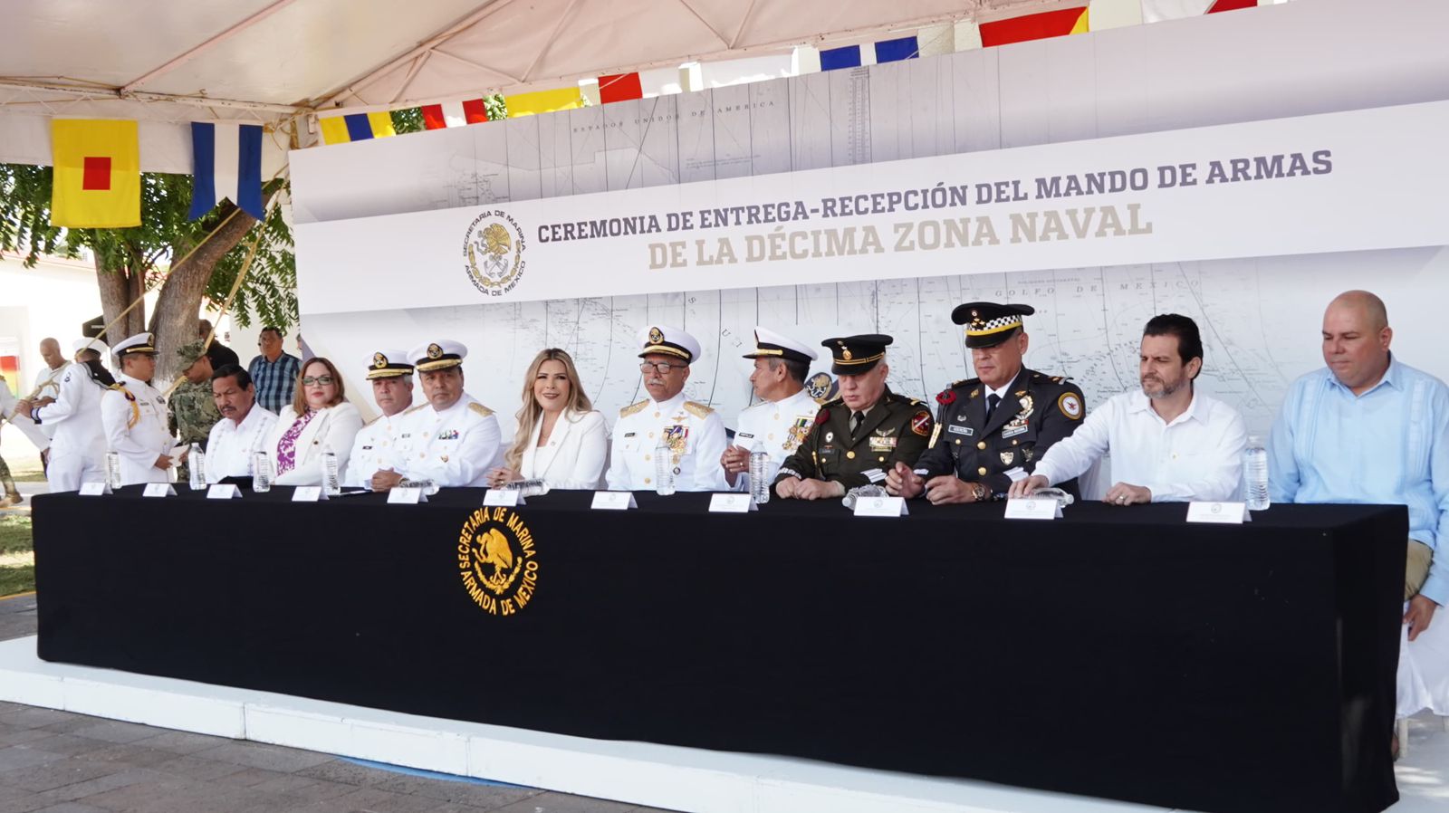 En representación del gobernador del estado de Nayarit, Miguel Ángel Navarro Quintero, la secretaria general de Gobierno, Rocío Esther González García, asistió a la ceremonia de Entrega–Recepción del Mando de Armas de la Décima Zona Naval, con sede en el municipio de San Blas.