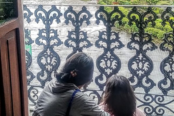 Por: Mike Rosales Una madre y su hija resguardadas en un balcón de palacio de gobierno mientras pasa la lluvia disfrutan del paisaje. «Es bonito ver llover y no mojarse».