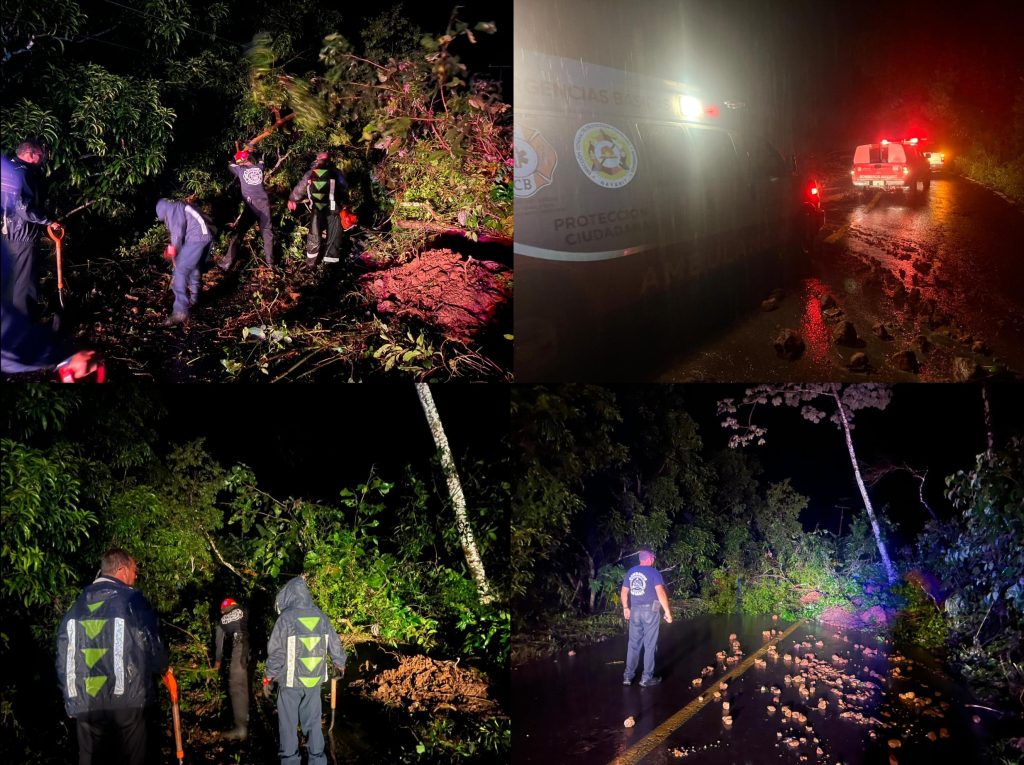Entre las principales labores, se brindó atención en la carretera estatal 76 Tepic–San Blas, desde la unidad habitacional Infonavit Solidaridad, en el municipio de Tepic, hasta la localidad de Santa Cruz de Miramar, en San Blas. En este punto, los elementos de rescate utilizaron motosierras para cortar y retirar árboles caídos que obstruían el paso vehicular.