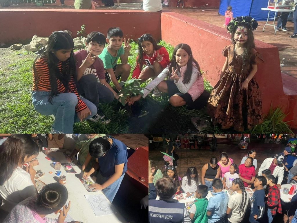 Como parte de la jornada, se realizó una reforestación de áreas verdes en la plaza principal Francisco I. Madero, donde niñas, niños y familias participaron en la plantación de árboles, promoviendo la conciencia ecológica y el respeto por el entorno natural.